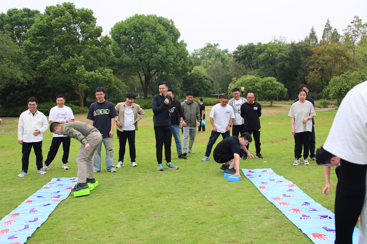 徒步结束后,体能教练组织大家进行拉伸及团队趣味游戏。有趣的比赛,让大家马上脱却了徒步的疲惫,在你来我往的“较量”中,充分发挥了集体的思考力与执行力,现场欢声笑语不断。