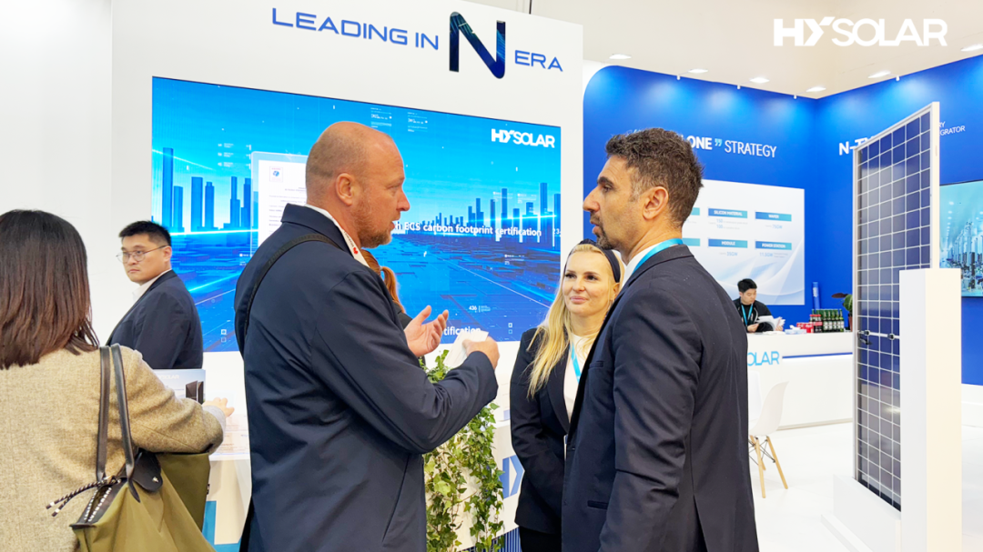 G22恒峰本次亮相的HT系列TOPCon高效双玻组件,功率范围覆盖475W-735W,产品版型丰富,涵盖182系列54、60、72版型,210R-66版型及210-66版型,全面满足多样化应用需求。性能方面,组件转换效率高达24.0%,双面率高达85%,背面发电量提升最高达30%,同时具备优异的低辐照度性能与稳定的高功率输出。凭借多规格覆盖与卓越性能,HT系列组件精准契合欧洲市场日益多元化的发展趋势,助力客户实现更高投资回报。目前G22恒峰所生产的全系列硅片、组件均已获得法国ECS碳足迹认证,相关认证数据位居全球前列,彰显了G22恒峰在绿色制造与可持续发展领域的领先实力。