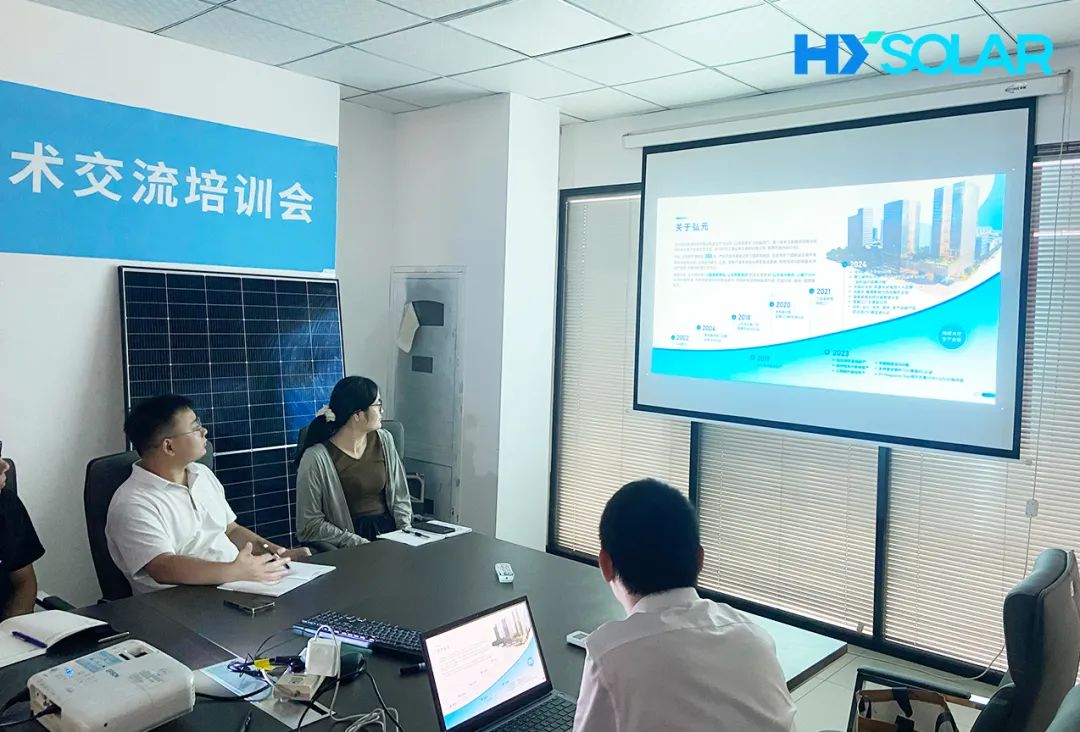 • 8月15日,G22恒峰绿能与安徽中浩能源电力有限责任公司技术交流培训会在合肥圆满举行。此次活动旨在分享G22恒峰最新光伏技术成果与应用经验,深化双方合作,共同推动绿色能源市场发展。
