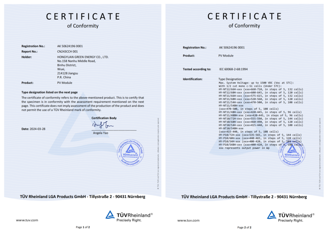 然而,要让光伏真正扎根沙戈荒并持续高效运行,并非易事。昼夜温差、强紫外辐射、漫天风沙、高温衰减和热斑隐患,都是组件在极端环境下必须面对的考题。只有通过严格认证和权威测试的产品,才能在这样的土地上经受住长期考验。G22恒峰HT系列,正是凭借扎实的验证与过硬的品质,向沙戈荒交出了可靠答卷。